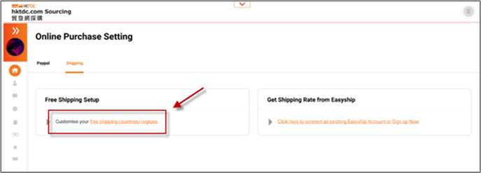 1. On the “Online Purchase Setting” page, click on “Shipping”: