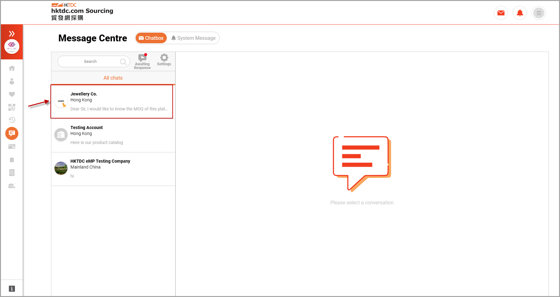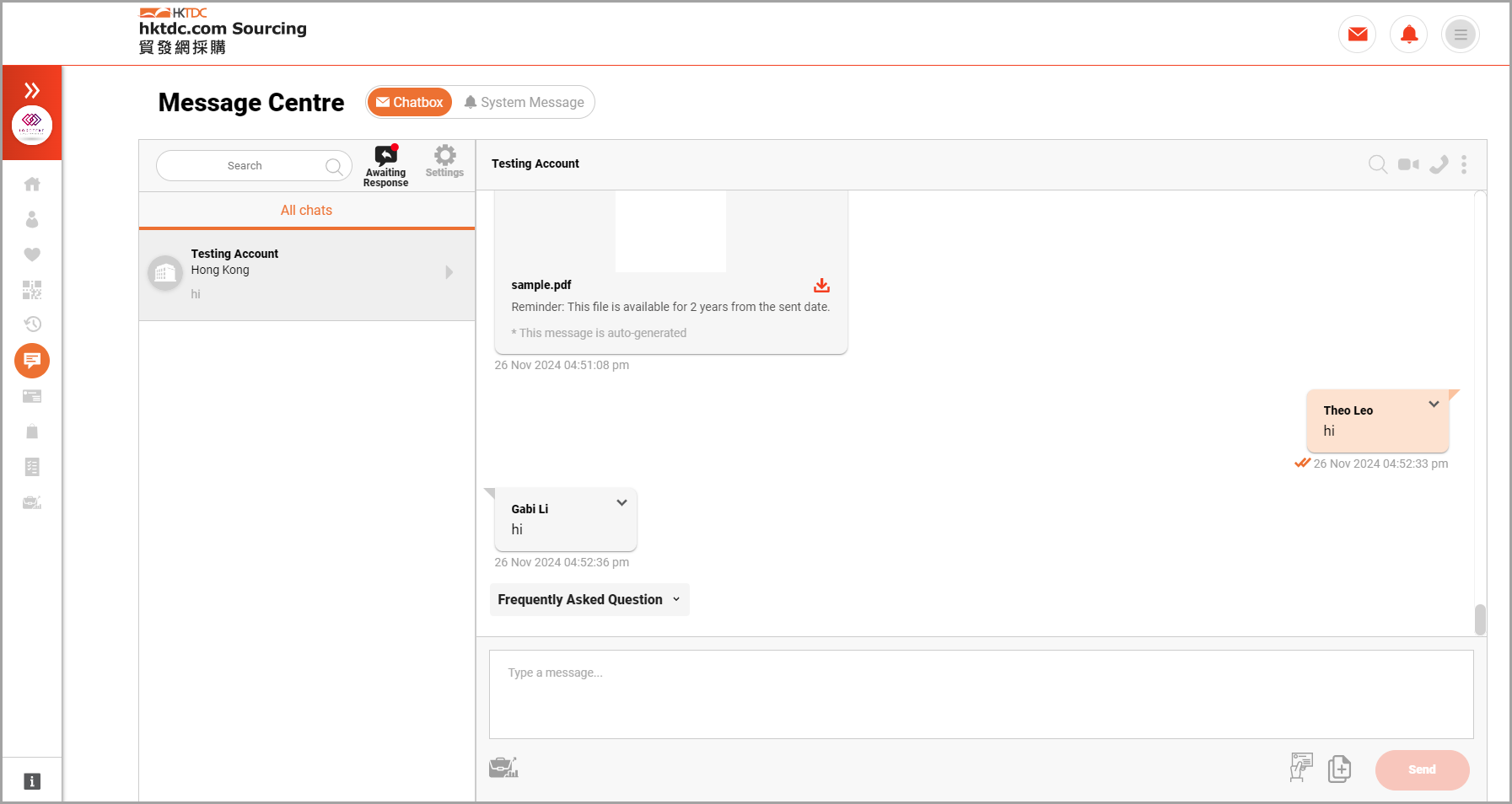 What additional functions are available in the Message Centre?