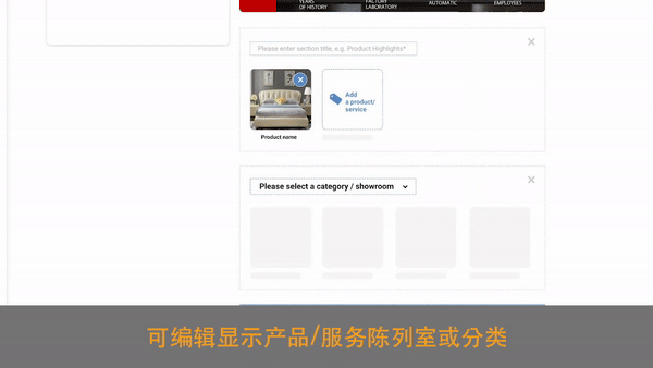 4. 如欲从陈列室移除产品/服务,请按该产品/服务缩略图右上角的「x」按钮