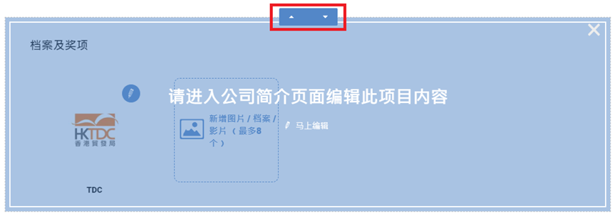 - 档案及奖项 - 上传图像或视频以展示你公司的档案和奖项。