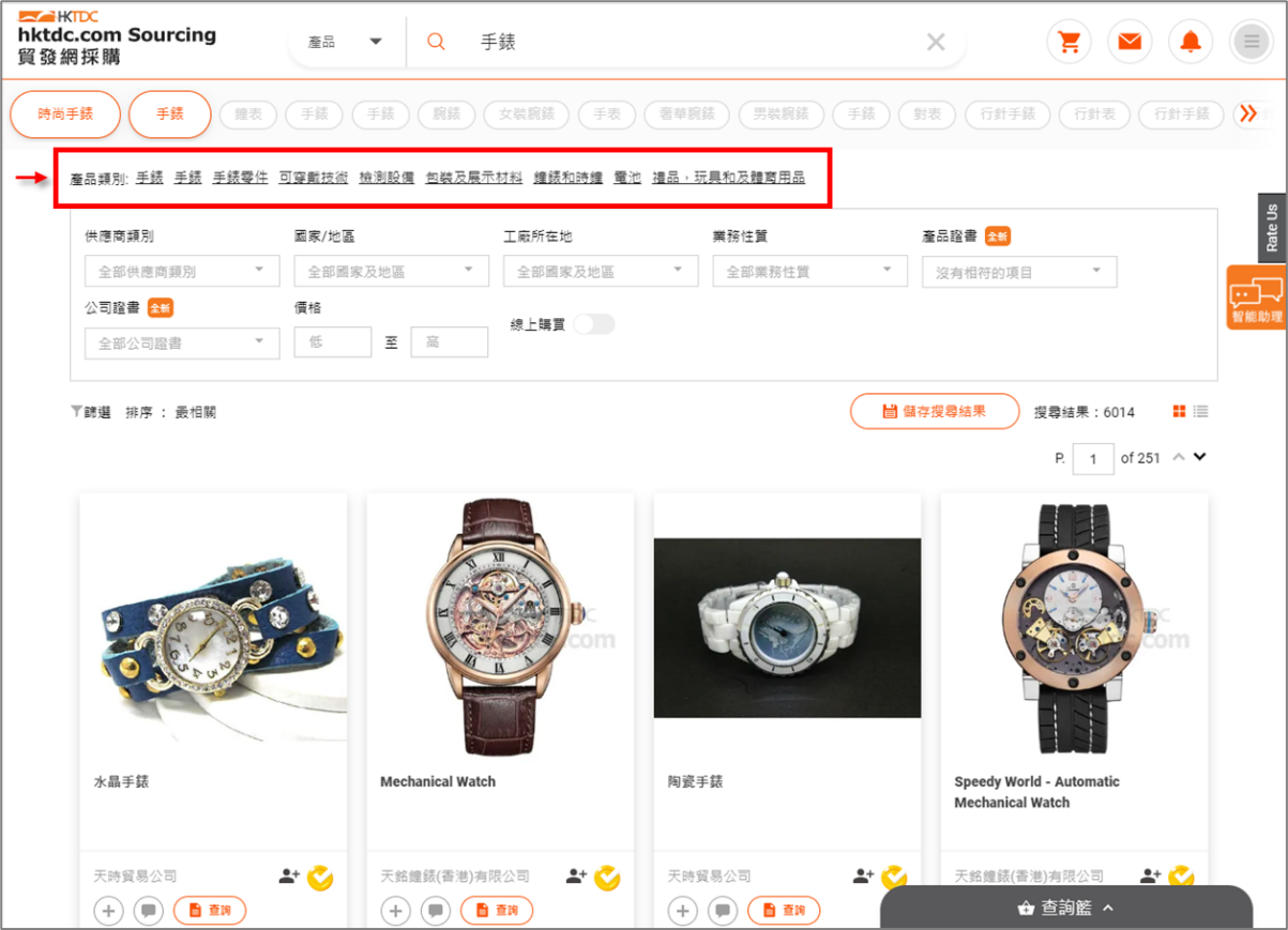 您亦可以点击与您采购需求相关的类别来显示特定类别内的搜索结果。